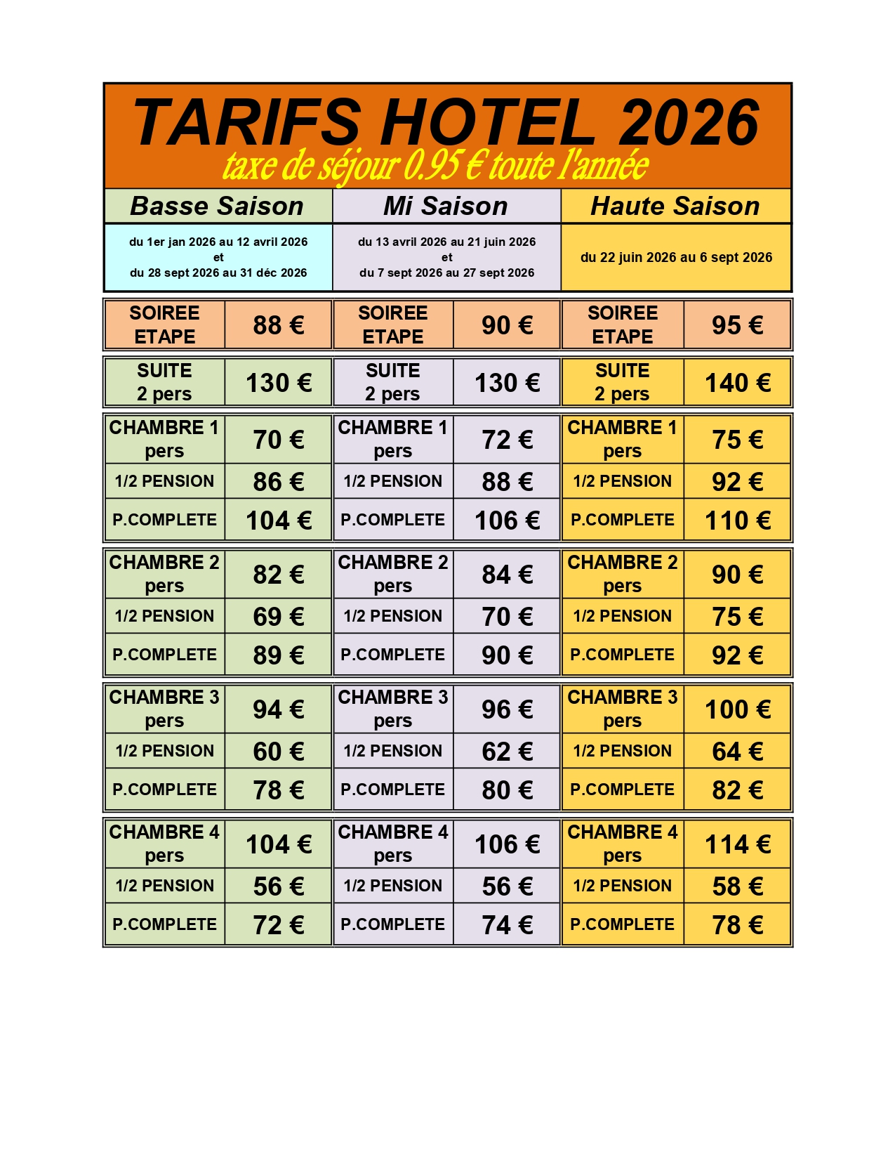Des formules en demi-pension ou pension complète sont disponibles pour un séjour tout compris.