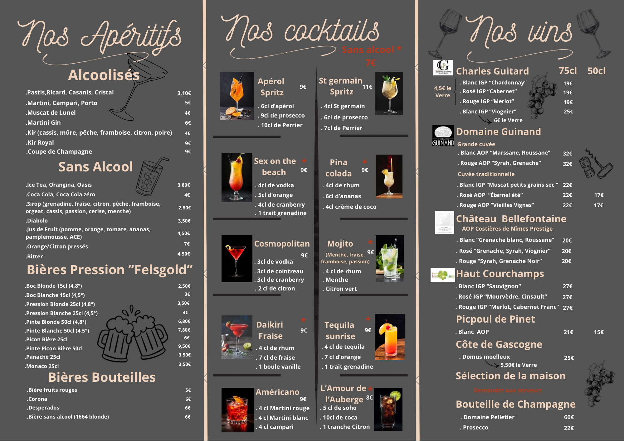 De l’apéritif au digestif, profitez d’un moment de plaisir et de convivialité.